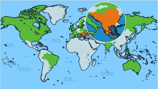 Here is the map of where in the world our suppliers (green) and